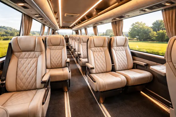 Offrent jusqu’à 60 places assises avec un confort optimal pour les longs trajets. Sièges inclinables, toilettes à bord, espace bagages généreux.