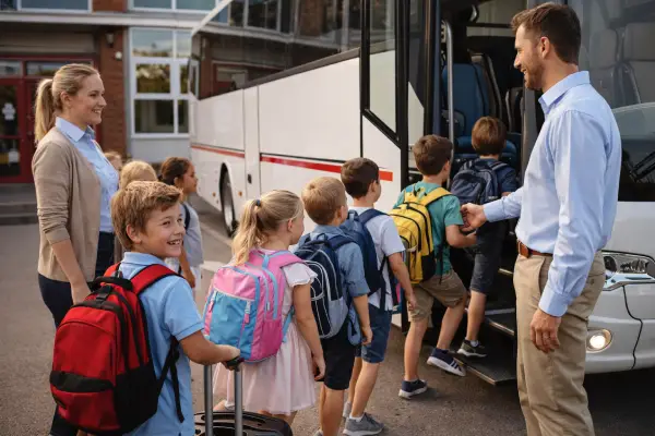 Nos conducteurs détiennent les certifications requises pour le transport de mineurs. Ils connaissent les protocoles de sécurité applicables aux sorties scolaires et périscolaires.